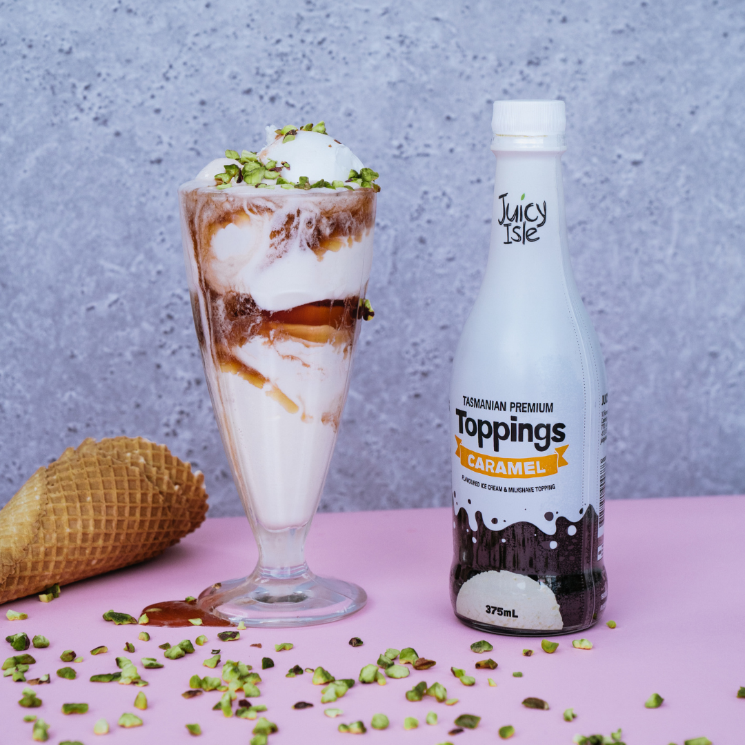 Add a burst of delicious buttery smooth flavour to your favourite desserts and sweet treats with Juicy Isle's Caramel Flavoured Dessert Toppings.