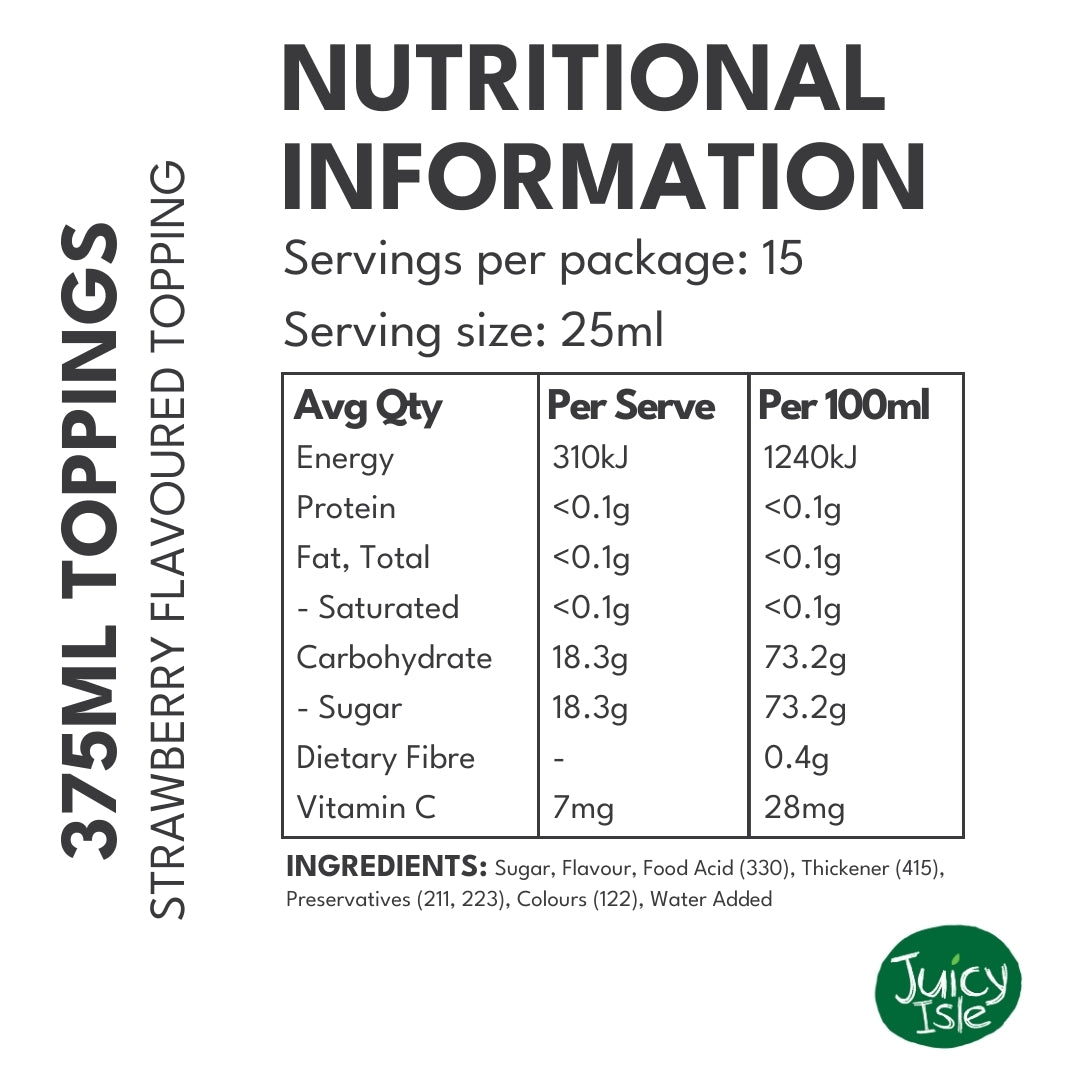 Add a burst of delicious berry flavour to your favourite desserts and sweet treats with Juicy Isle's Strawberry Flavoured Dessert Toppings.